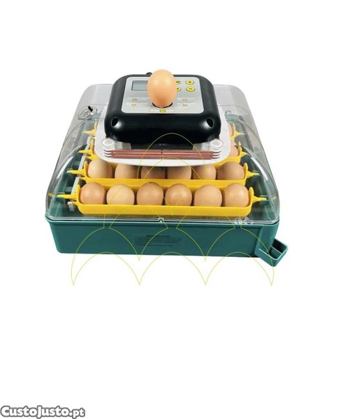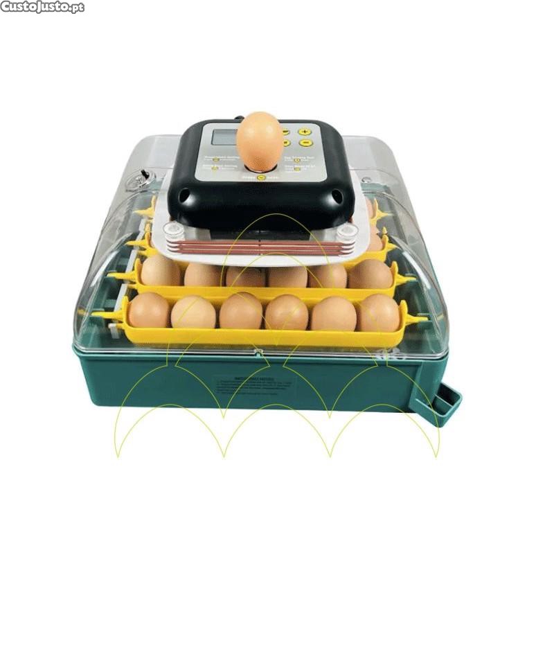 Viragem automática: Sistema que inclina suavemente os ovos a cada 60 minutos, com paragem automática antes da eclosão;