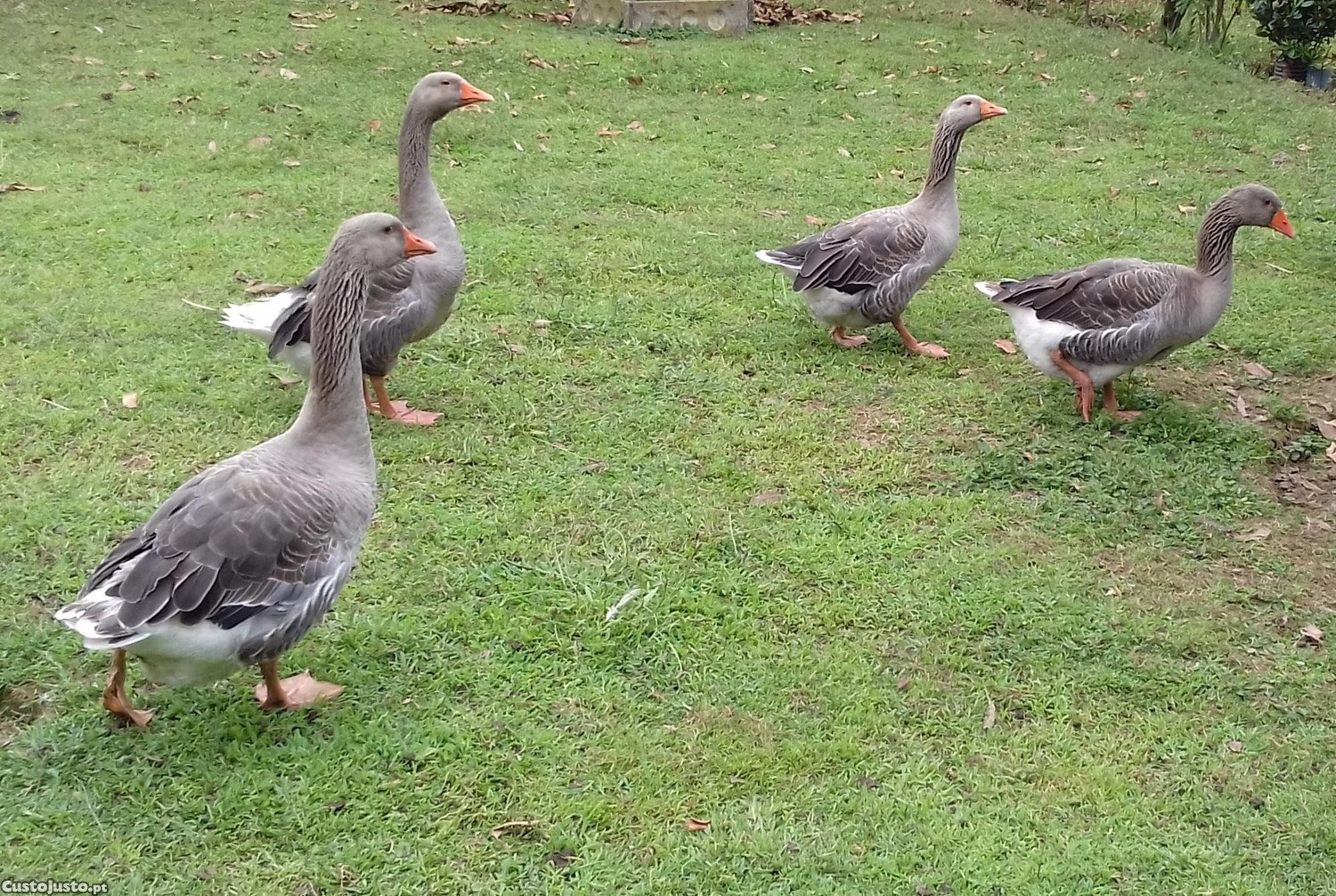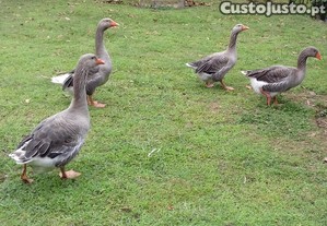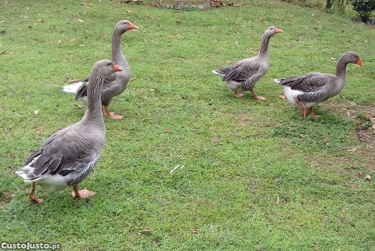 Gansos Toulouse criados à solta. Alimentam se todos os dias com frutas, verduras e misturas de sementes.