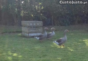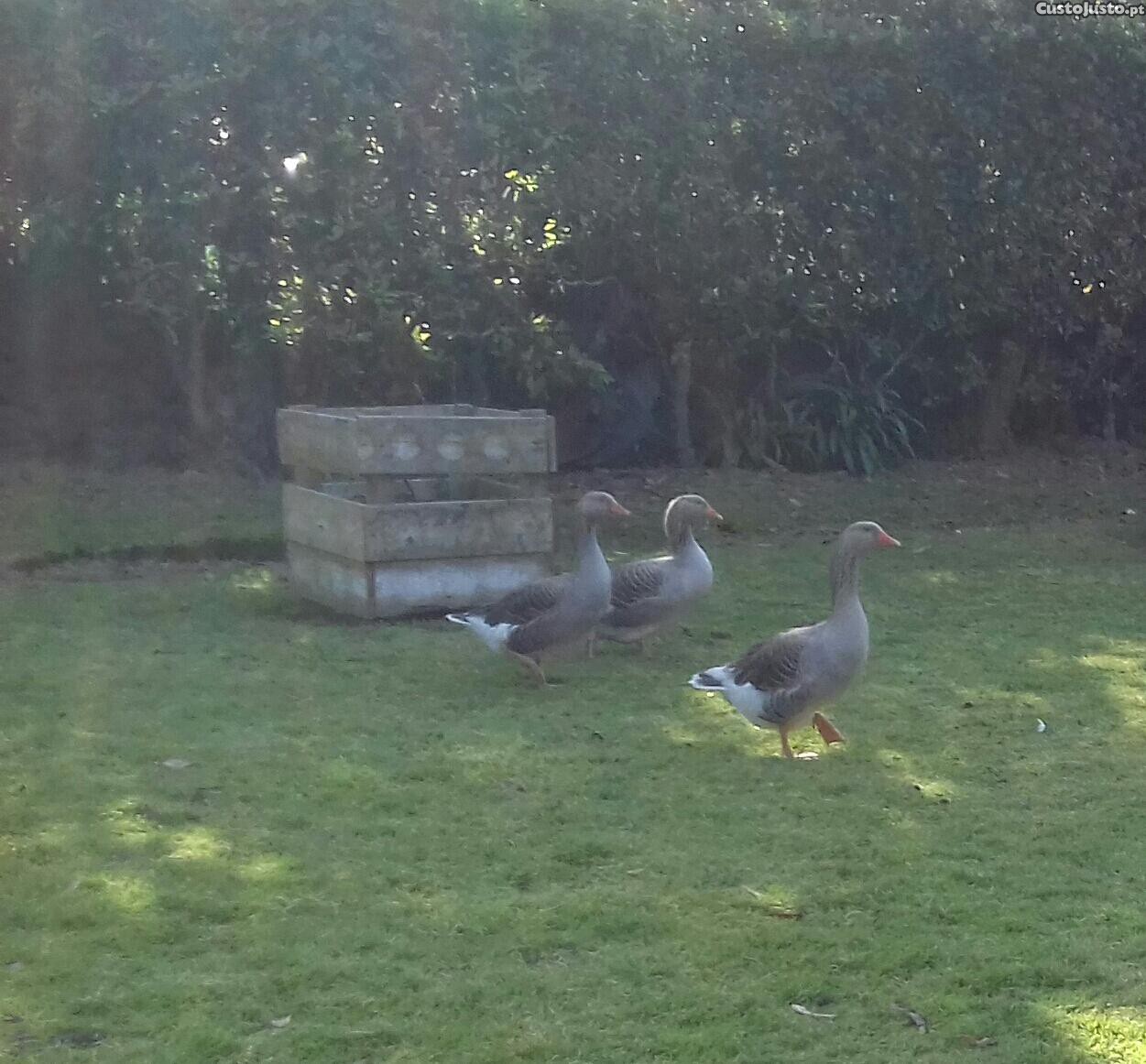 Gansos Toulouse criados à solta. Alimentam se todos os dias com frutas, verduras e misturas de sementes.