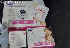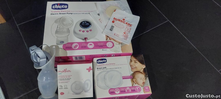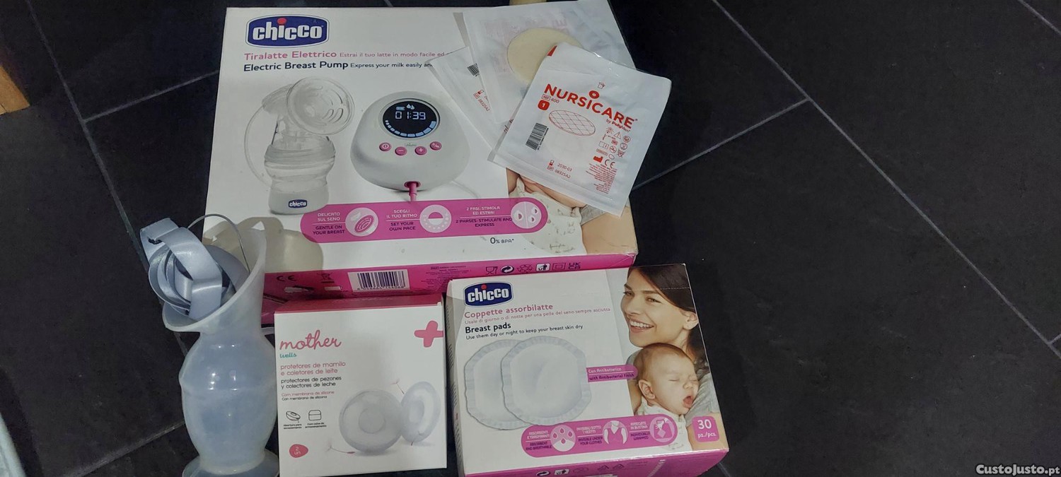 Vendo bomba eléctrica da chicco, 1copo coletor, 3 discos da nursicare, protetores de mamilo/coletores de leite, cx quase completa de discos absorventes de amamentação. Algumas coisas novas e outras usadas 1x.