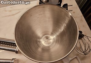Batedeira pequena com taça em aço inoxidável, pá, batedor e gancho para massa. Incluo também 3 acessórios para massa