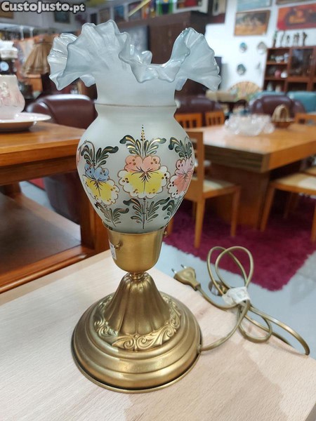 Preço: 33 €Candeeiro em Latão com Abajur em Vidro Pintado à Mão