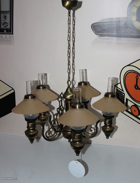 Preço: 115 €Lustre de Teto em Latão com Abajur e Chaminé em Vidro
