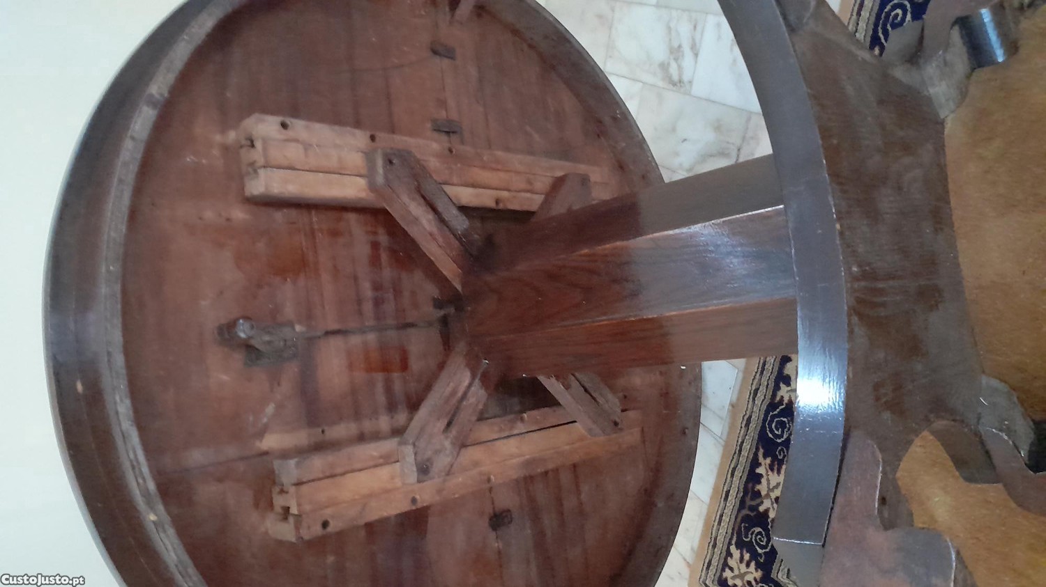 Mesa redonda muito antiga, com 1,20 de diâmetro precisa ser restaurada
