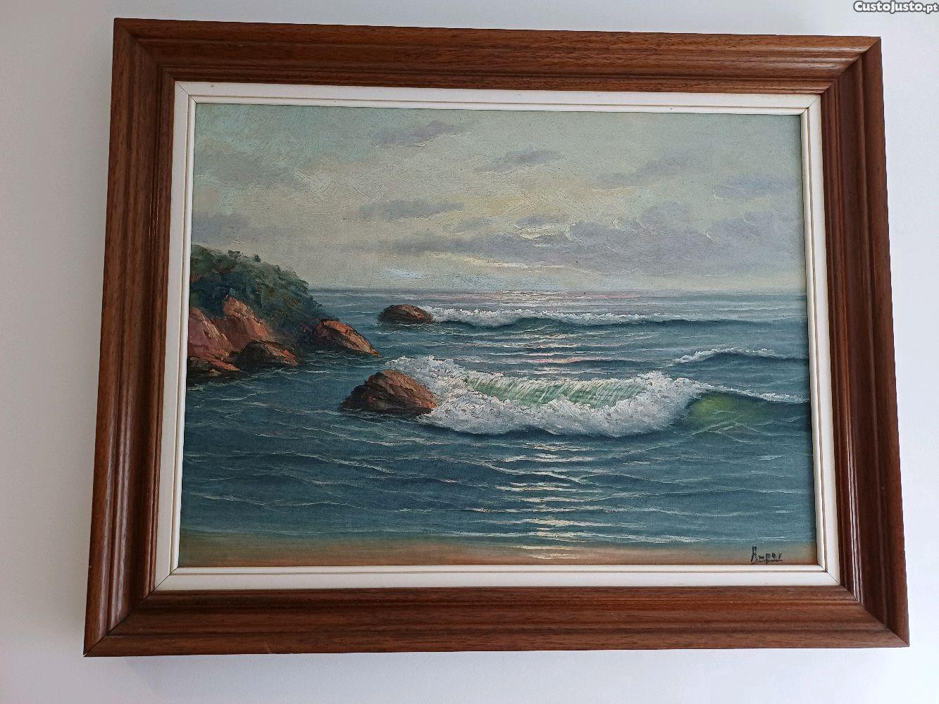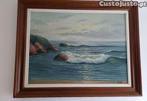 Quadro acrílico de uma paisagem do mar, assinado.