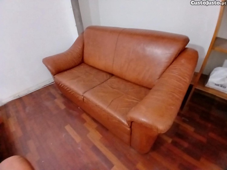 Vendo sofá em pele de dois lugares sem marcas de uso.