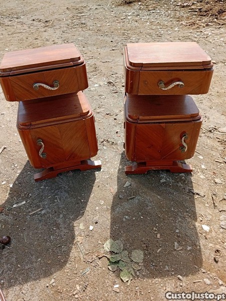 vendo estas duas mesinhas de cabeceira em madeira de acácia antigas em bom estado alguma dúvida ligue,