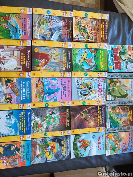 Vendem-se livro da coleção Gerónimo Stilton. Tenho disponíveis os números 1, 4, 5, 9, 10, 11, 19, 21,32, 34, 41, 42, 44, 46, 48, 62 da coleção normal e os números 1, 2 e 7 da coleção "Os Pré-historratos". 3EUR negociáveis.