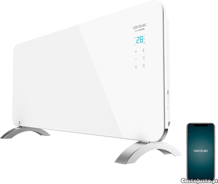 Frente de vidro com pés e wifi de 2000 W; a sua tecnologia foi concebida para aquecer divisões até 20 m2 de forma rápida e eficiente; moderno e elegante; desenhado com vidro temperado e linhas cuidadas