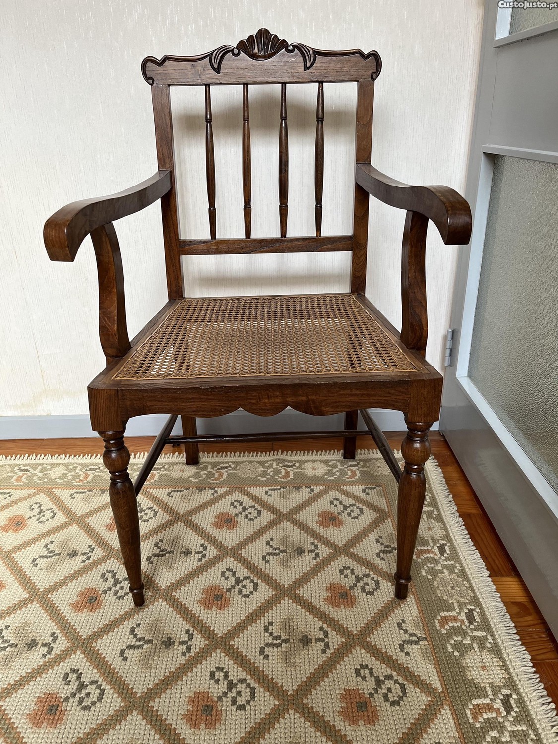 Cadeira de braços em palhinha
