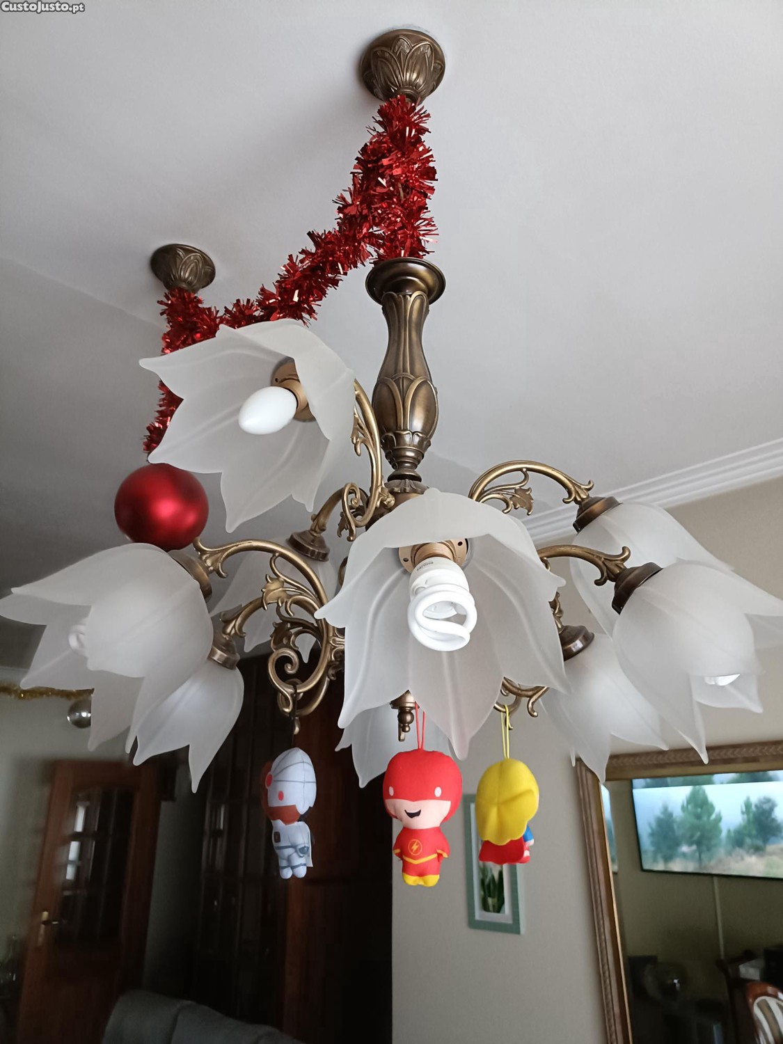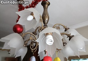 Vendo este candeeiro pelo motivo de ter trocado por outro. Está em muito bom estado e acende em duas versões. Tem 9 lâmpadas e é de bronze.