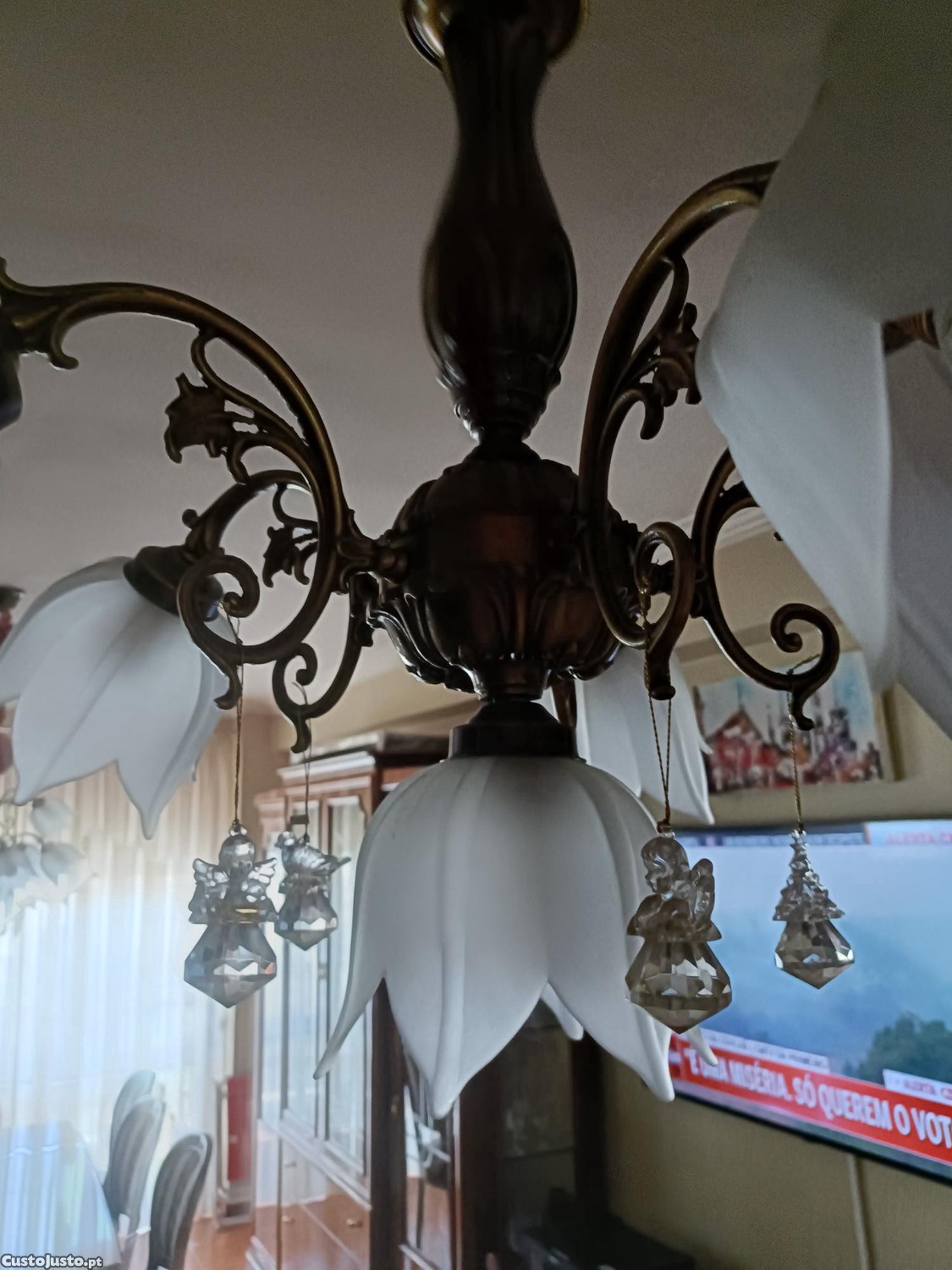 Vendo este candeeiro de sala que acende em duas versões de 6 lâmpadas. Estou a vender pelo motivo de ter comprado outro tipo de candeeiro. Está em muito bom estado.