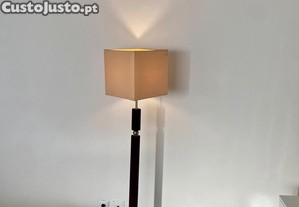 Candeeiro de pé em bom estado, totalmente funcional. Design simples e elegante, ideal para sala ou quarto, proporcionando uma luz ambiente agradável.Estrutura sólida e estável, com abajur em tecido.
