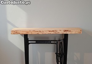 Esta consola combina a nostalgia das máquinas Singer com a força do pinho natural.