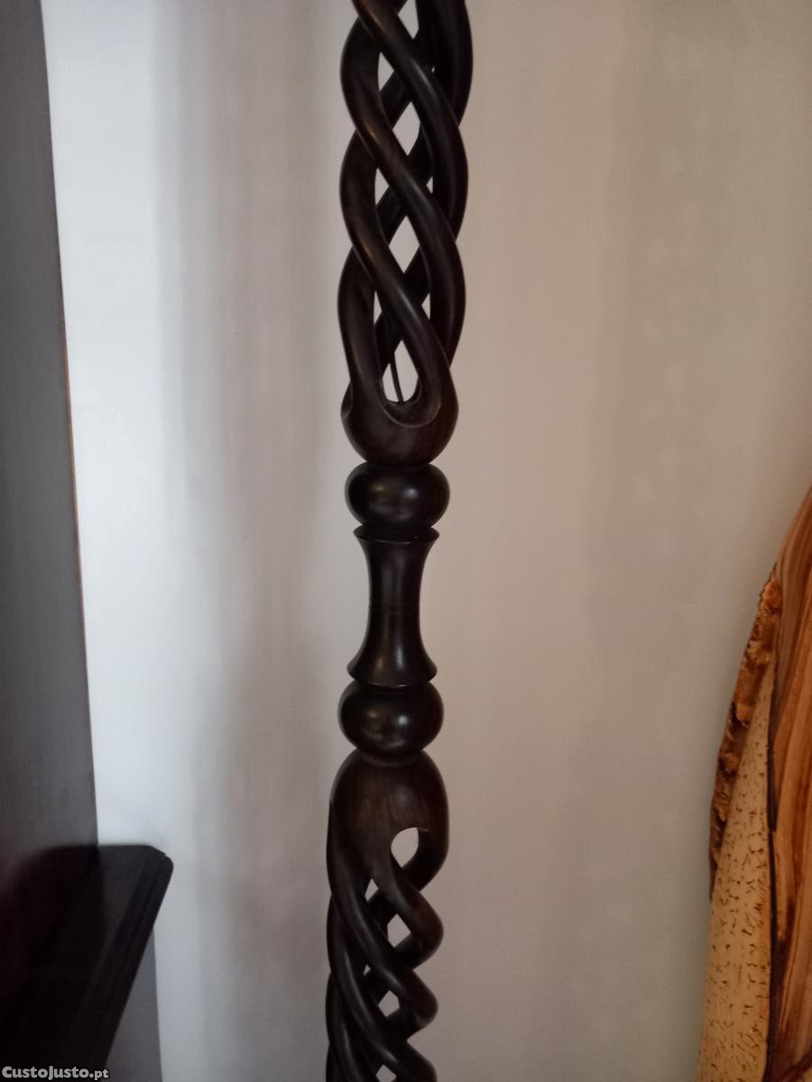 - Dois candeeiros em pau preto, torneados, sem abat-jours, mas electrificados, 1,70m de altura.