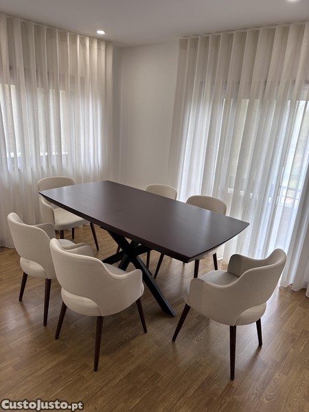 Mesa de jantar em MDF folheada em Nogueira
