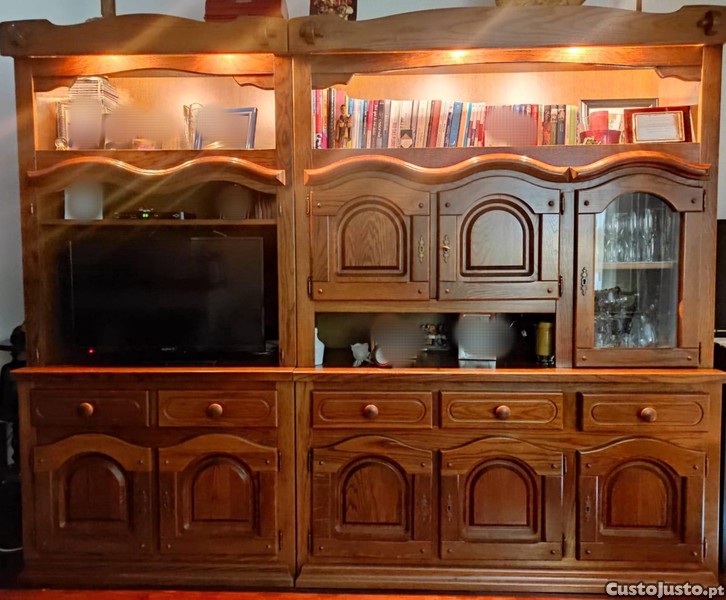 Móvel de estilo holandês em excelente estado de conservação. Ideal para sala de estar, com prateleiras e gavetas para armazenamento. Peça rústica e elegante que irá valorizar o seu espaço. Móvel em madeira resistente com iluminação embutida no topo e bar.
