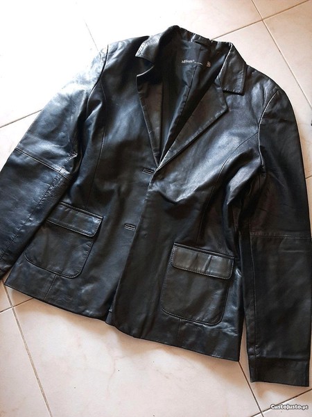 casaco em pele couro preto tamanho xl impecavel