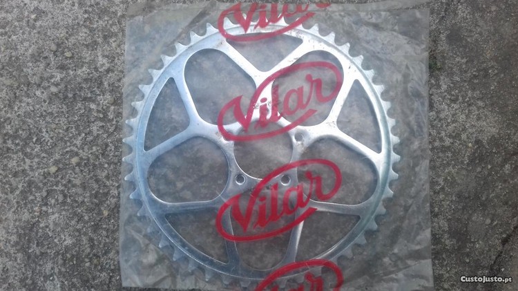 Pedaleira Vilar nova bicicleta pasteleira(prato) nova ainda embalado 46dentes para o seu restauro tenho mais bicicletas e peças ver os meus outros anúncios para contactar ou tirar alguma duvida através do anuncio enviar mensagem ao anunciante ou através do contacto que está no anuncio muito obrigado