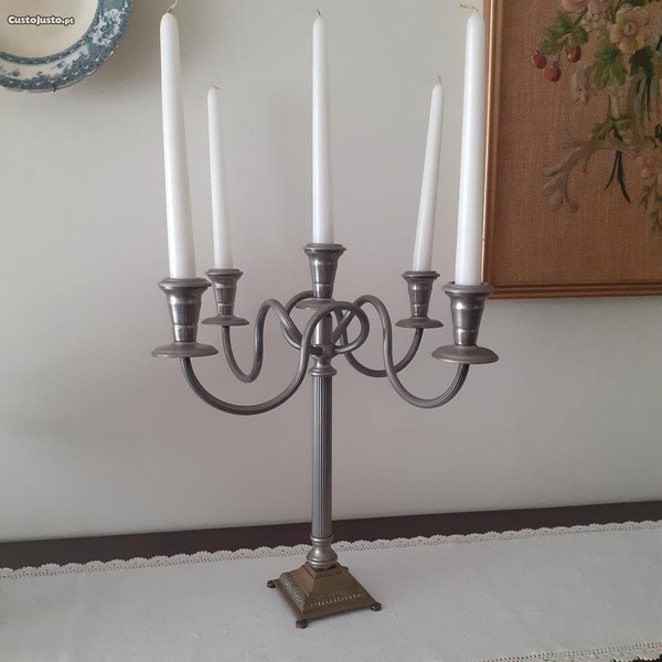 Preço: 50 €Castiçal de estanho e latão com 5 braços p/velas