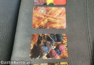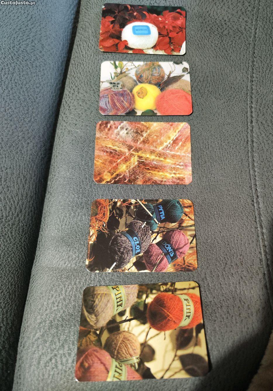 Conjunto de 5 calendários da Filor com imagens de lã e tecelagem.