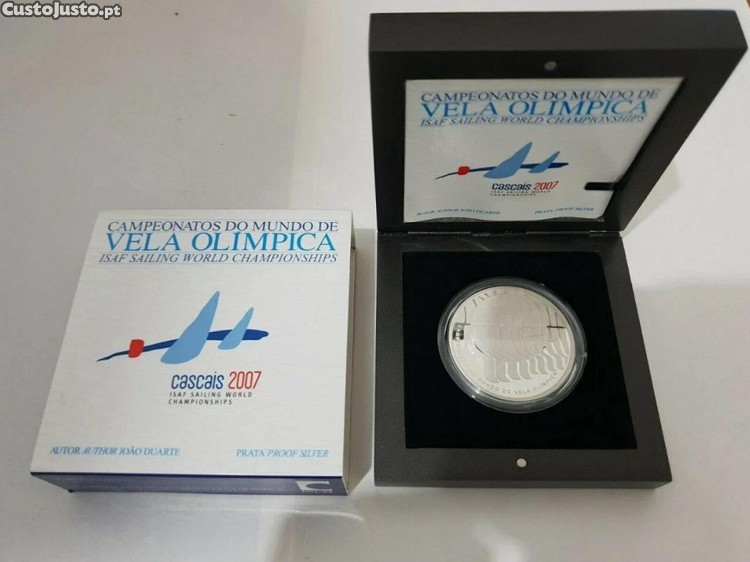 Preço: 75 €Moeda portuguesa de prata comemorativa de 10 euros proof do Campeonato do Mundo Olímpico de Vela de Cascais 2007
