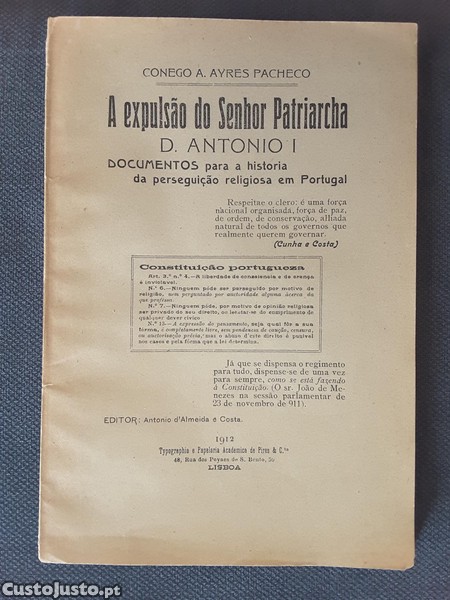 Preço: 9 €A Expulsão do Senhor Patriarcha D. António I (1912)
