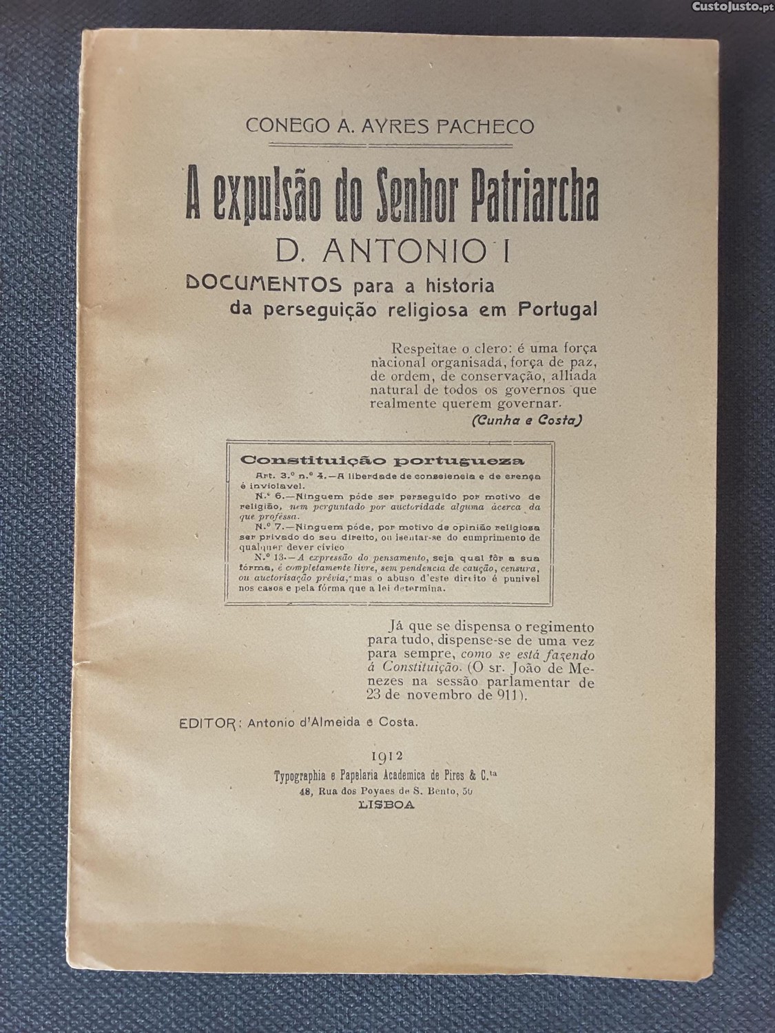 A Expulsão do Senhor Patriarcha D. António I. Documentos para a História da Perseguição Religiosa em Portugal