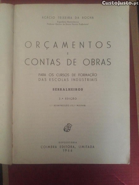 vendo, Orçamentos e contas de Obras Serralheiros para os cursos de Formação das Escolas Industriais do Eng. Eletrotécnico da altura Acácio Teixeira da Rocha numerado e autentificado