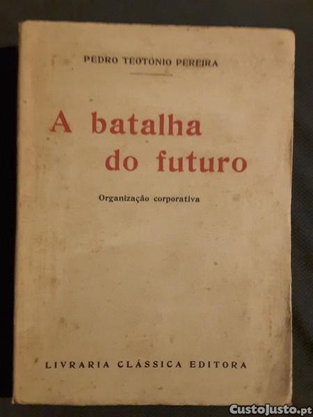 Preço: 12 €Pedro Teotónio Pereira - A Batalha do Futuro. Organização Corporativa