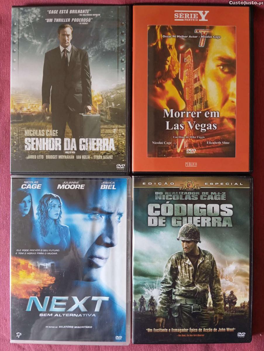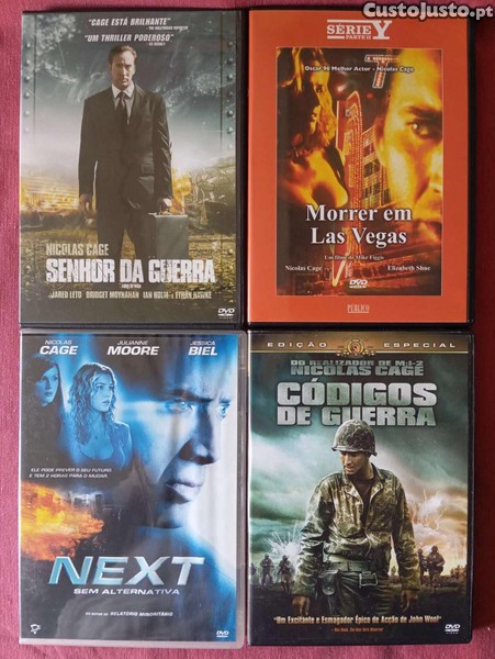 Usados em excelente estado: "Senhor da Guerra", "Next - Sem Alternativa" e "Códigos de Guerra" / Usado em razoável estado - Apresenta riscos, que não afectam a visualização: "Morrer em Las Vegas"