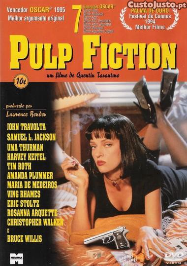 Pulp Fiction é uma espectacular mistura de acção explosiva e humor perverso - a crítica e o público à volta do mundo consideram este como um dos grandes filmes da década de 90! Quentin Tarantino (Vencedor de um Oscar da Academia - Melhor Argumento Original; Vencedor de um Golden Globe - Melhor Filme) conta-nos três histórias interligadas, desempenhadas por um elenco de fantásticos personagens; dois assassinos baratos (John travolta e Samuel L. Jackson), a sexy mulher do seu patrão (Uma Thurman) e um desesperado boxeur em fuga (Bruce Willis). É impossível comparar esta louca e extravagante aventura a qualquer experiência cinematográfica jamais realizada.