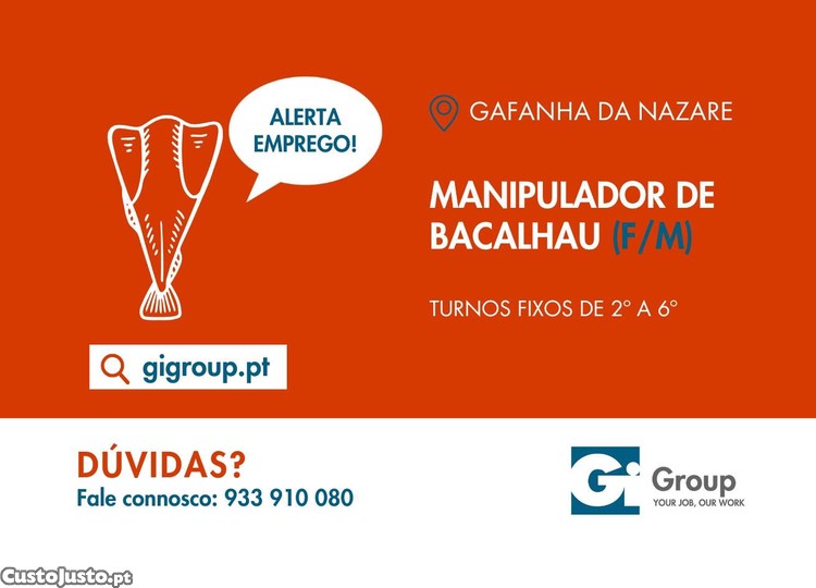 Estamos a recrutar para empresa cliente do setor de produtos do pescado, Operador fabril (M/F/D) para a unidade da Gafanha da Nazaré;
