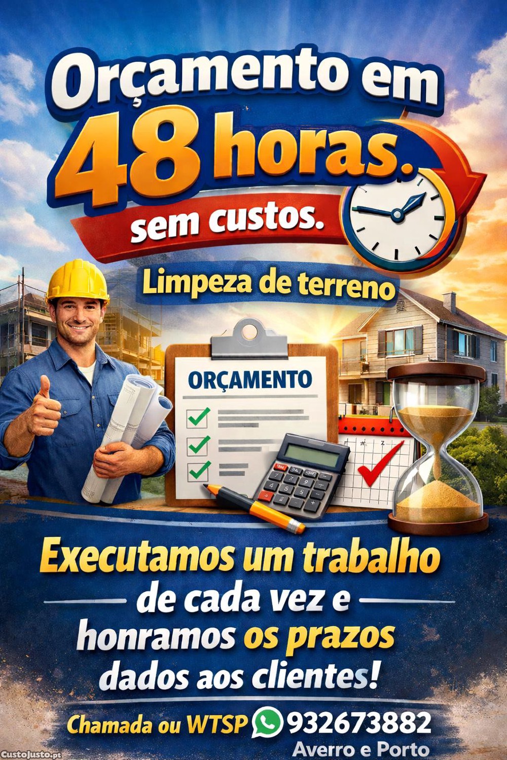 Zona de Aveiro e Porto - Obtenha preço e disponibilidade para executar o trabalho em 48 horas!