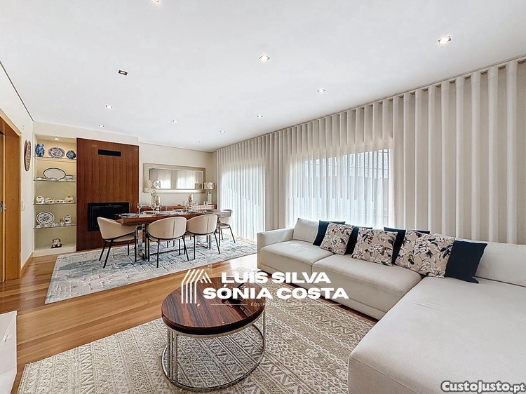 Moradia T4 Excelente Estado e Áreas | 2 Suites, Jacuzzi, Painéis Solares c/ Baterias - 500mts do centro da cidade de Santa Maria da Feira!~| Novidade No Mercado |~~Localizada a apenas 500 metros do centro da cidade de Santa Maria da Feira, numa zona tranquila e residencial, com acesso rápido a comércio, serviços, escolas e principais vias.~Uma moradia que se destaca pelo excelente estado de conservação, áreas interiores muito generosas e uma luminosidade natural incrível, proporcionando conforto, funcionalidade e qualidade de vida.~~Inteligentemente distribuída e com imensa luz natural é composta por:~~Rés-do-chão:~- Sala de jantar e sala de estar com recuperador de calor e acesso a uma generosa varanda;~- Generosa cozinha equipada (forno, placa, exaustor, micro-ondas e máquina de lavar louça)~- WC de serviço;~~1º Andar - Zona Privada:~- Quarto suíte com roupeiros embutidos. Casa de banho privada com duche;~- Outro quarto suíte com roupeiros embutidos. Casa de banho privada com duche;~- Dois quartos, ambos com roupeiros embutidos, um deles com varanda;~- Casa de banho de apoio com banheira e toalheiro aquecido;~- Acesso ás águas furtadas com piso em cerâmica, arrumos e casa de banho com duche;~~Cave:~- Garagem fechada para dois carros com portões seccionados automáticos;~- Sala de jacuzzi e zona para banho;~- Sapateira e salão;~- Lavandaria e arrumos;~~Para além de tudo isto esta fantástica Moradia está também equipada com:~- Painéis solares com baterias;~- Aspiração e aquecimento central;~- Tetos falsos com focos embutidos;~- Estores térmicos e elétricos;~- Caixilharia termolacada com vidro duplo;~Entre outros.~~Uma oportunidade rara de viver a poucos minutos do centro de Santa Maria da Feira, com toda a tranquilidade e qualidade que uma moradia desta dimensão pode oferecer.~~Agende já a sua visita e encante-se!