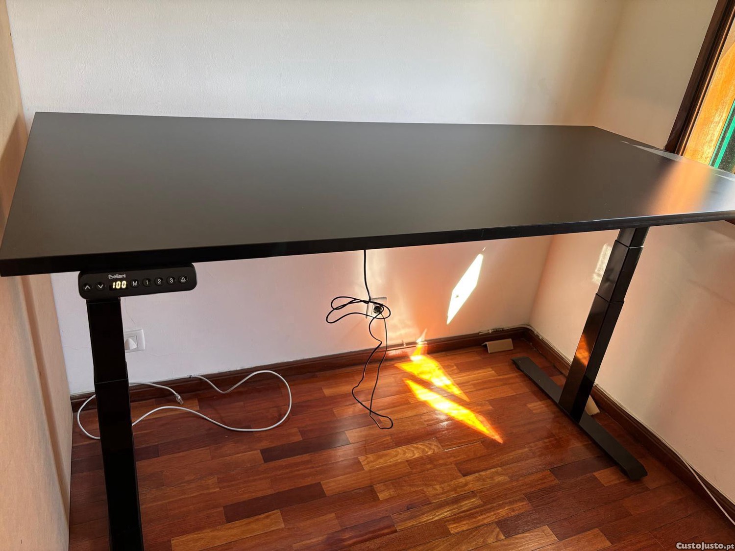 Vendo secretária elevatória elétrica da Beliani, com tampo amplo de 180x80 cm, ideal para escritório ou setup gaming.