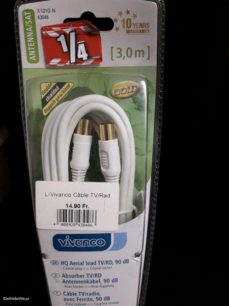 vendo cabo de tv com 3 metros com 10 anos de garantia com terminais Gold da vivanco