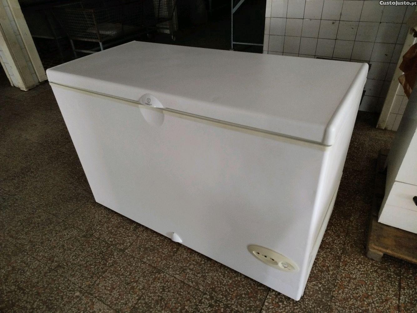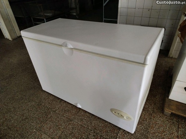 Arca congeladora, com capacidade de 356 litros, da marca Indesit.