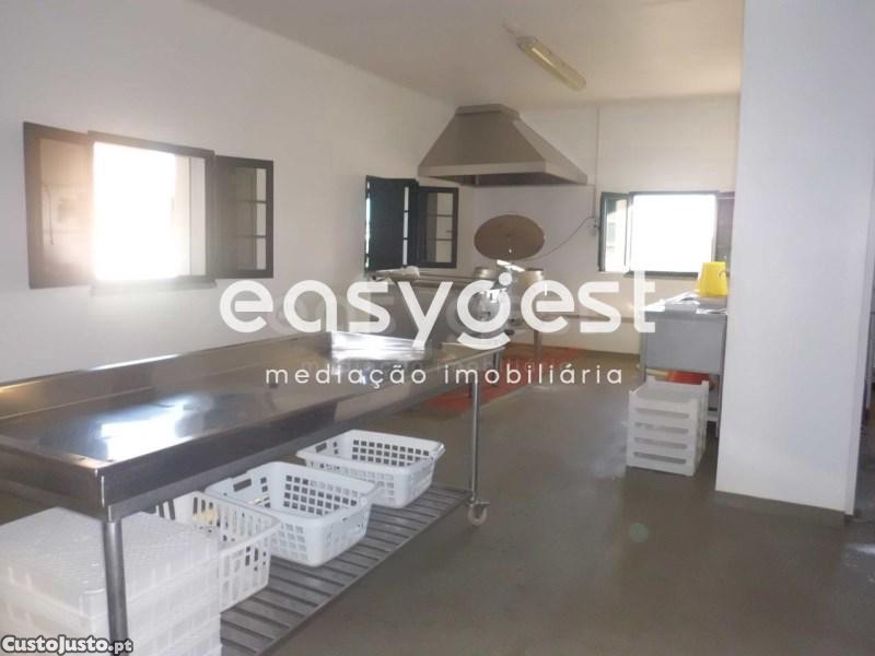 Armazém composto por 8 divisões, entre elas 2 WC´s, 2 câmaras, uma refrigeração e outra de cura, espaço para o fabrico, escritório, área de venda e alpendre.