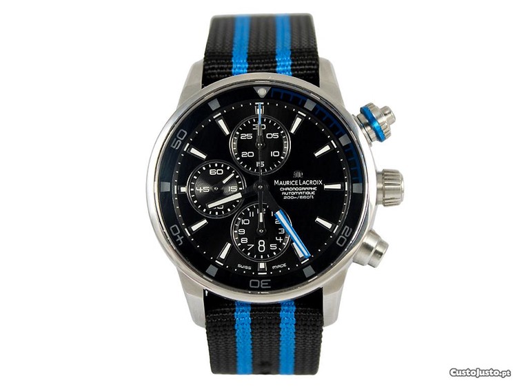 * Maurice Lacroix Pontos S Chronographe com movimento Maurice Lacroix calibre ML 112 mecânico de corda automática com uma frequência de 28,800 alternâncias/horas e com uma reserva de corda aproximada de 42 horas fabricado em 2017