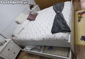 Cama de casal com quatro gavetas, estrado e colchão
