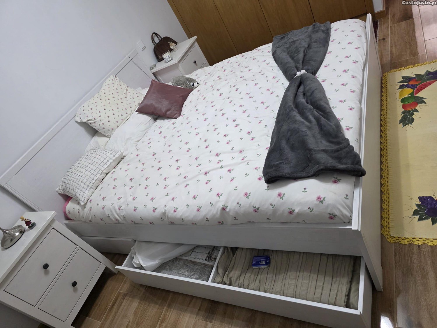 Preço: 400 €Cama de casal com quatro gavetas, estrado e colchão