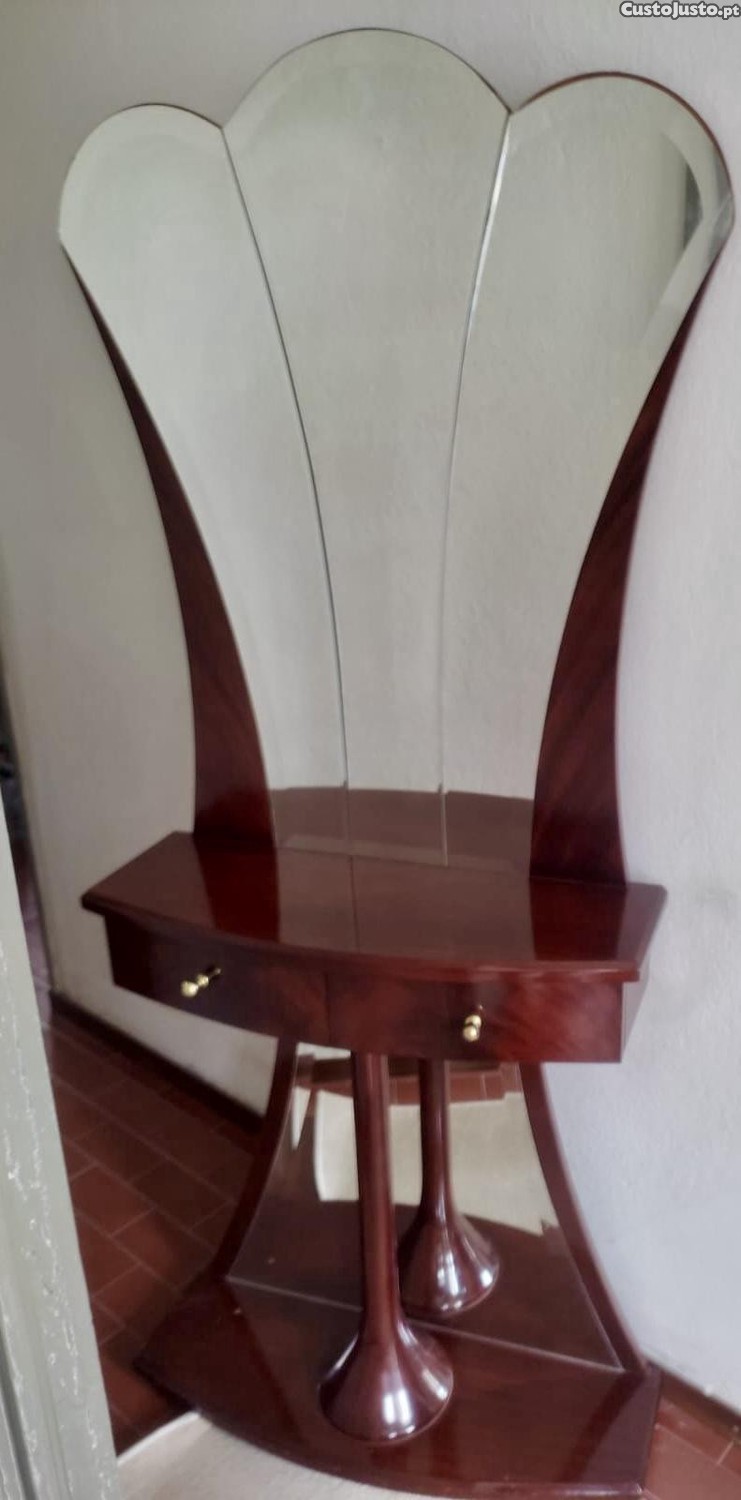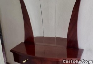 Móvel em madeira maciça com espelho e duas gavetas.