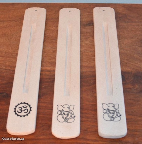 Réguas para incenso em stick (pau), subordinadas ao tema Hinduísmo. As réguas, originárias da India, estão executadas em material cerâmico de muito boa qualidade. A base das mesmas está revestida com cortiça para que a peça não risque as superfícies nas quais seja apoiada.