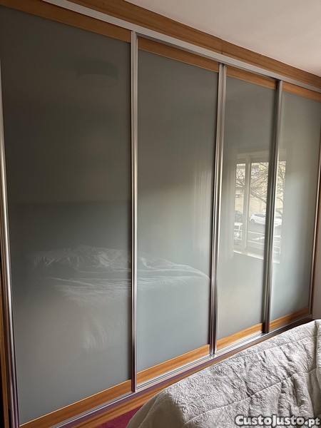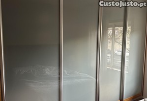 Espaçoso e moderno sem fundo pois foi feito por medida. 3,18x2,53x 65. As portas são de vidro fosco, deslizantes e podem ser retiradas, ficando tipo closet. Possui espelho no interior à altura do mesmo. Tem parafusos de alta qualidade e são escondidos (ver fotos). A desmontagem e transporte fica a cargo do comprador após pagamento.