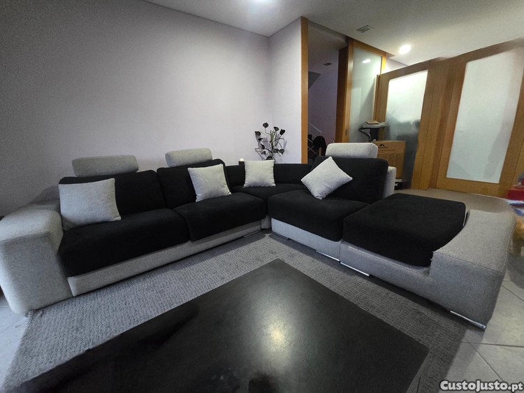 Preço: 1 200 €Sofá 4 lugares com chaise longue + cubo rebatível Cinzento e Preto