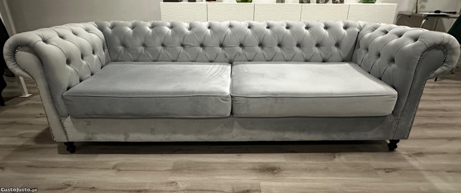 Preço: 750 €Sofá Capitonê Cinza Claro