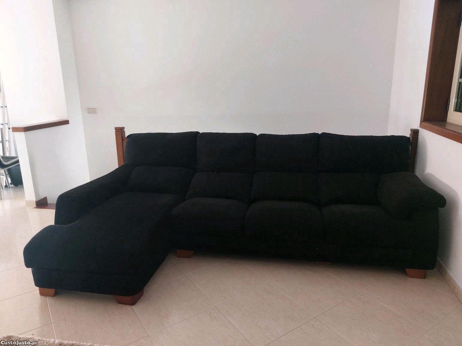 Preço: 200 €Sofá preto com chaiselong