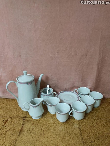 várias peça diferentes, 2 conjuntos de chá, 12 copos de gim com pé preto e alguns conjuntos de peças, prateadas, douradas e azuis, 1 preta e 3 pratos aos tons de verde vidrados com 50cm de diâmetro....Dou preferência a quem levar tudo...