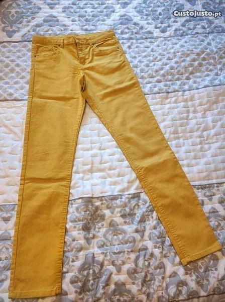 Vendo calças amarelo torrado tamanho 11-12y, serve a uma pessoa que use o tamanho 34, estão como novas, apenas usei uma vez.